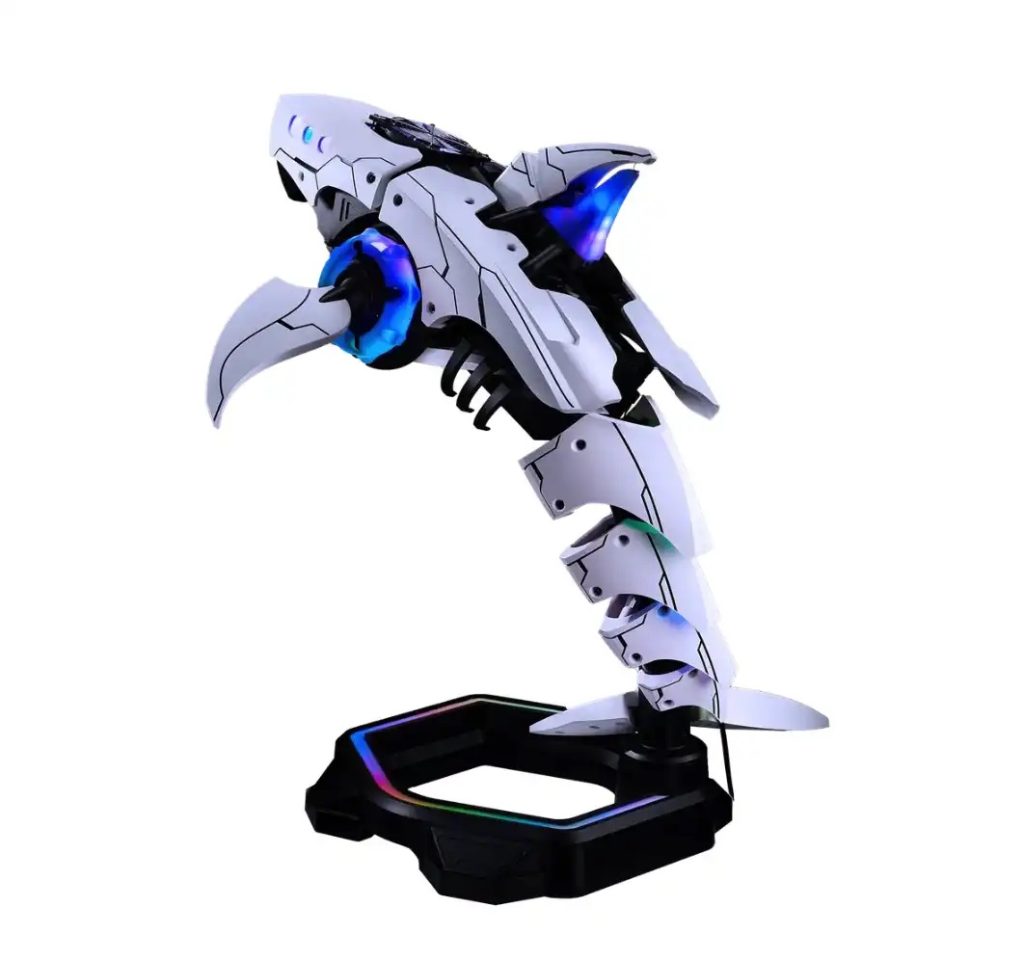 ولی شما این مقاله را برای شناخت قطعات واقعی این کامپیوتر نمیخوانید. شما میخواهید با کیس رباتی-کوسهای (نوعی کیس که بسیاری از قطعاتش در فضای باز هستند) آن آشنا شوید. این کیس کامپیوتر را اینونی (Inony) هنرمند و مودر کامپیوتر (PC modder) تایلندی با قابی شبیه یک «کوسه» در ژست در حال جهش و با ارتفاع حدود سه فوت طراحی کرده است. به کولر MasterLiquid 120 Atmos AIO با کابلهایی که مانند دندانهای کوسه است که از دهانش خارج شده توجه کنید.