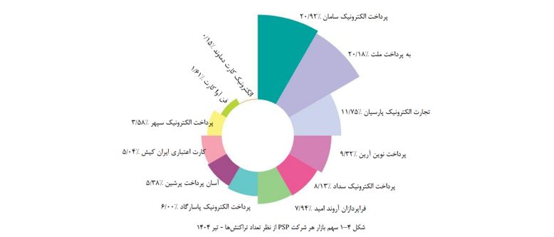 سهم از کل تراکنش‌ها: سپ با کسب ۲۰.۹۲ درصد از کل تراکنش‌های پرداخت در تیرماه، در صدر جدول قرار گرفت.